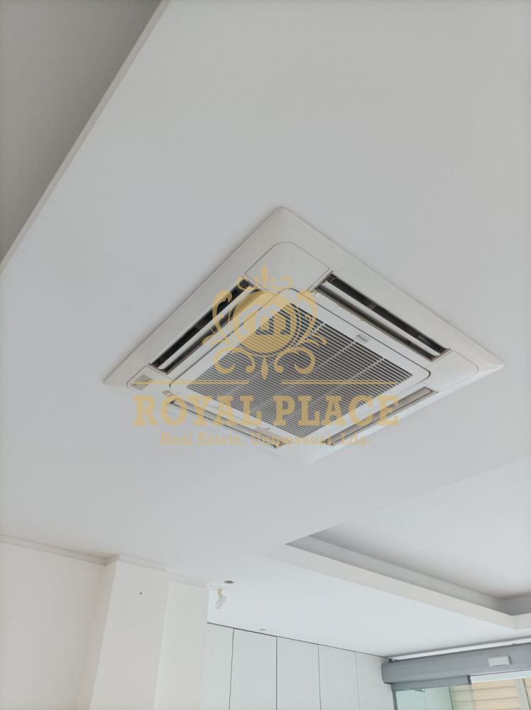Esta equipada com sistema de som no teto e ar condicionado.